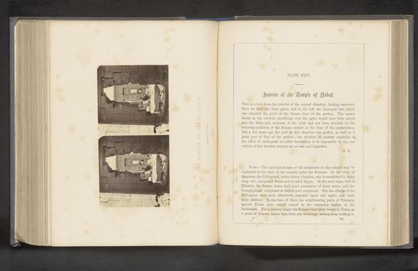 This albumen silver print of a relief at the temple of Dakka was made by Francis Frith in the 19th century. The stereoscopic image presents a textured surface of ancient carvings, its monochromatic tones emphasizing the play of light and shadow across the stone. This visual structure evokes a sense of depth and antiquity, inviting us to contemplate the image's historical and cultural context. The relief's formal arrangement invites semiotic interpretation, acting as a signifier of a rich historical narrative. The organization of the relief can be viewed through the lens of structuralism, revealing underlying codes of representation and power dynamics of the temple's time. The way Frith captured this relief destabilizes fixed meanings, compelling viewers to engage with the temple's cultural significance and its layered historical transformations. Consider how the careful balance of texture and light operates not merely as aesthetic devices, but as cultural markers that engage with broader philosophical discourses about time, memory, and representation. The relief as captured through this image, becomes a site of continuous re-interpretation.