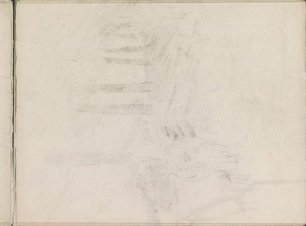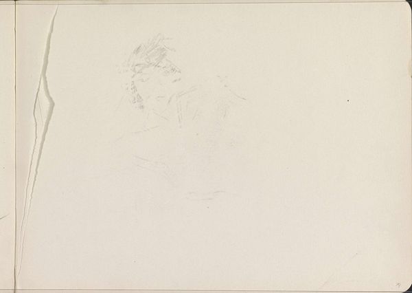 Curator: This is John Singer Sargent’s "Slight Sketch of Crucified Christ," housed here at the Harvard Art Museums. Editor: It's incredibly faint, almost ethereal. The roughness of the paper seems to swallow the image. Curator: The crucifixion is such a potent symbol. Sargent, known for his portraits of worldly figures, here grapples with spiritual iconography. What cultural anxieties or personal beliefs might have led him to this subject? Editor: I'm curious about the graphite itself. Was this a study? An underdrawing? The quick, almost hesitant marks speak to a process—a testing of form and light. Curator: It’s a fascinating contrast to his more finished works. It reveals a more vulnerable, perhaps even searching, side of the artist, a shared humanity. Editor: Right. It's the labor involved. The material speaks to doubt, experimentation. Curator: Indeed, it offers a quiet, almost private, meditation on a universally recognized symbol. Editor: I see more of the physical process of drawing here than in his slicker works. Interesting!