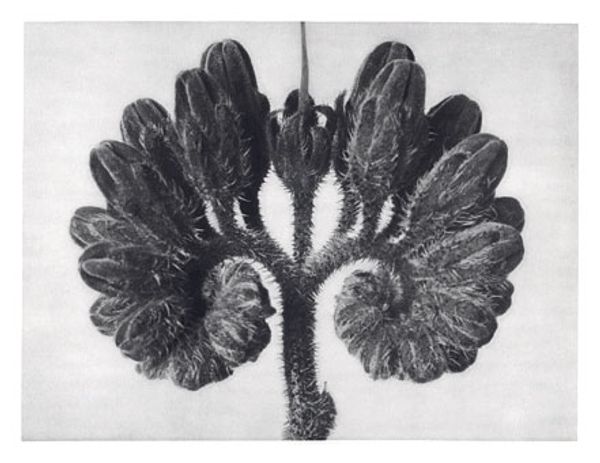 Karl Blossfeldt took this photograph, “Art Forms in Nature 67”, with what looks like a real sense of curiosity, bordering on obsession. There’s something about the way he renders the natural forms – almost metallic, and yet also really delicate. The stark black and white photography emphasizes the textures – look at the grainy details, the way the light catches the edges of each tiny leaf. It's almost sculptural; he's making these plants look like objects, but also revealing their intricate designs. I’m drawn to the central flower, with its star-like, symmetrical arrangement of petals, and those stick like stamens pointing outwards – it's like a little botanical explosion. It reminds me of how art, like nature, is constantly experimenting, finding new forms and patterns. Artists like Georgia O'Keefe also captured similar aspects of organic forms, but Blossfeldt is more about the raw, unadorned beauty of his subjects. He shows that even in something as small as a plant, there's a whole universe of art to discover.