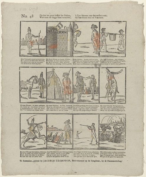 This 1810 print by Willem van Bergen was made using etching and engraving, techniques that transform metal plates into printing surfaces. The fine lines of the illustrations and text demonstrate the engraver's mastery, a craft demanding years of apprenticeship. The imagery reveals the social context of the print. We see laborers using simple machines - levers, pulleys, and gears - to ease their tasks. Notice how each scene emphasizes human power, even as it's augmented by technology. This speaks to a period of transition, where manual labor was still central, yet the potential of mechanization was becoming apparent. The print's didactic tone, meant to educate children, underscores the value placed on both knowledge and industriousness. Ultimately, this print prompts us to consider the labor involved not only in the scenes it depicts but also in its creation. Appreciating the skills and processes behind its production deepens our understanding of its historical and cultural significance.