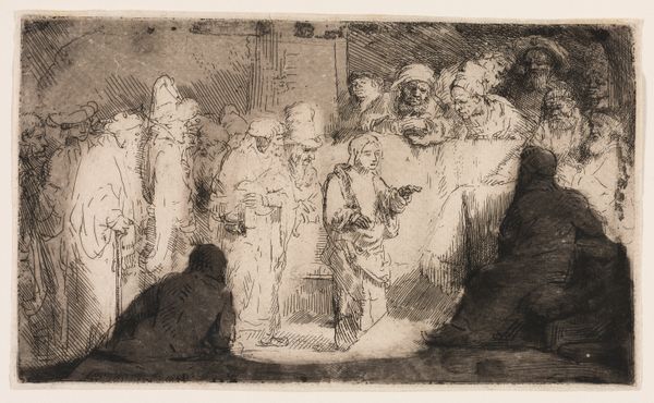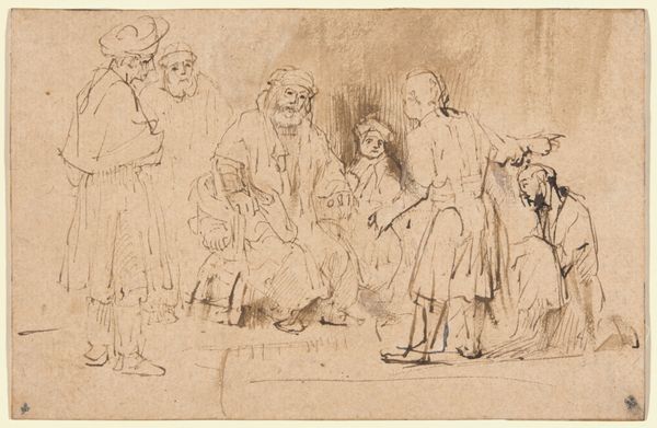 Curator: Otto Scholderer’s, "Vorbereitung zum Kostümball," from approximately 1879-1880, created with chalk and pastel, offers an intriguing glimpse into a scene of pre-ball preparations. Editor: It feels almost dreamlike, doesn't it? The figures seem to emerge softly from the textured ground, the artist barely containing the forms with a somewhat hesitant hand. Curator: Indeed. The composition employs a sophisticated orchestration of tonal values and textures. Observe how Scholderer balances positive and negative space. The sketch style seems to draw from academic art and romanticism. Editor: The academic, I see it now, in the classically draped figures. And the romantic, surely, is in that pervasive, rather hazy mood and intimate domestic scene. I imagine costume balls like this were often an opportunity to network within certain political circles of the era, don’t you think? Curator: Certainly. Costume balls, during this period, were significant social rituals where one could see expressions of social standing through finery and costume. It represents genre painting well with a look into historical, ordinary life. Editor: Yet, beyond its function, I wonder if the soft rendering and intimate gathering also suggests the anxieties associated with performing one's identity in public? Each mark of the pastel betrays the potential performance. Curator: Fascinating thought. The use of drawing allows a unique, unedited perspective of such social rituals. Perhaps this piece helps underscore how we still "prepare" for social events today, albeit without quite the same theatrical flair. Editor: Right. Ultimately, by observing the artist's lines, and how it shows both performance and preparation, maybe we also glimpse what lies beyond all formal conventions. Curator: Precisely. This study reveals so much more than its subject through its very form and construction.