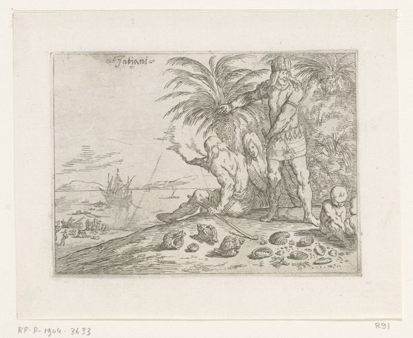 Curator: This pen and ink drawing, an engraving dating from 1578-1596, presents an intriguing allegorical tableau. The piece is titled "Twee apen, twee kamelen, een stekelvarken, een eenhoorn en een mythisch dier," which translates to "Two monkeys, two camels, a porcupine, a unicorn, and a mythical animal." Quite a cast! Editor: My first thought? Pure whimsy! It's like a beautifully etched dream, overflowing with strange creatures and hinting at a story I can’t quite grasp, yet long to invent. Curator: The composition is structured with an almost taxonomic impulse; each animal occupies its own visual space within the landscape. Note the foregrounded ruins, contrasted with the more "natural" elements of trees and foliage which create depth. This use of contrast establishes a visual framework that suggests an organized philosophical outlook, perhaps an early inventory of the known and unknown. Editor: Oh, definitely! And it’s got this marvelous Northern Renaissance obsession with detail – every hair, every scale feels painstakingly rendered. It’s almost… playful. Especially the mischievous cherub lurking in the branches up there. He reminds me of how seriousness and humor can co-exist so wonderfully. What’s with the peculiar menagerie of beasts though? A unicorn hanging out with camels, for goodness’ sake! Curator: The symbolic weight assigned to these creatures within the Renaissance is pivotal. The unicorn, naturally, signals purity, grace and perhaps unattainability, positioned amidst a host of more terrestrial and readily ‘exploitable’ creatures like camels signifying the more tangible world of commerce and exploration. Editor: Ah, the grounded practicality versus ethereal aspiration! It all hints at the contradictions of the era: the burgeoning scientific inquiry meeting entrenched belief in the magical and the divine. It is that beautiful intersection of curiosity, a real artistic testament to how knowledge grows and changes as humans and creatures come in contact and cross paths. Curator: Indeed, this is a microcosm reflecting the burgeoning intellectual climate during that period, which also manifests visually as an engagement with semiotic interplay and symbolic weighting within visual syntax, revealing this composition as more than decorative and truly philosophical. Editor: And even today, centuries later, it has the capacity to spark curiosity in new and unexpected ways – it leaves me thinking about how art reflects, but also reshapes how we interpret our world and histories and even our shared dreams. Curator: Yes. A reminder that visual forms encapsulate enduring cultural inquiries that still resonate, offering continued contemplation as our readings change across time.