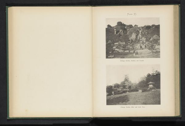 Curator: Let's see… I see an old photograph here. Albumen print, I’d guess, from sometime before 1899, tucked within the pages of what seems to be a travel journal. It’s a photograph titled “Gezicht op de Groote Kerk van Galle, Sri Lanka," which translates to "View of the Great Church of Galle, Sri Lanka". And it's signed by E. Castelein. There's something captivating about these colonial-era photographs, a strange mix of the exotic and the familiar. Editor: Absolutely. There’s almost a postcard-like quality to it. The architecture feels very European but framed by all that dense, tropical foliage. It strikes me as this quiet, almost melancholy image, as if capturing a place caught between two worlds. What particularly draws your eye? Curator: That's perceptive of you! You picked up on that in-betweenness I felt as well. My eye keeps jumping from the imposing architecture to the almost unruly vegetation. What stories lie hidden there? I wonder what the locals made of it all... Do you think the photographer saw themselves as an observer or participant in all of this? And what about the act of photographing this location…who do you think it was for? The colonizer or colonized? Editor: I hadn't considered the layers of perspective. It's fascinating to think about the power dynamic inherent in creating and consuming an image like this at that time. And now, here we are looking at it again through yet another lens. Curator: Exactly! Time gives us distance, perhaps even wisdom, to unravel some of these knots. That is the pleasure, isn't it? What story will future generations weave when looking at us? Editor: That's something to ponder. I will certainly consider perspective a bit more now. Curator: Wonderful! Remember to always keep asking questions. And keep that curiosity ablaze!
