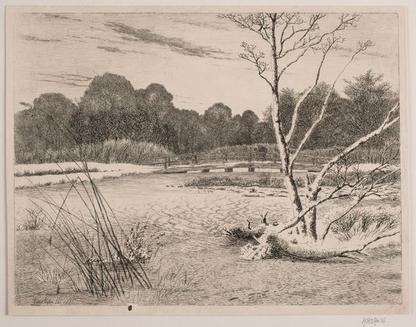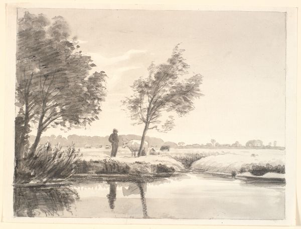 Anton Melbye made this landscape drawing with graphite on paper in 1856. Graphite, in its raw form, is a mineral, but for drawing it's usually mixed with clay and formed into a pencil. The amount of clay determines the hardness and darkness of the pencil. Looking closely, you can see the variety of marks Melbye achieved, from the soft, smudged sky to the sharp, detailed reflections in the water. The grainy texture of the paper also plays a role, catching the graphite and adding depth to the image. The choice of graphite is significant. It's a readily available, relatively inexpensive material. Unlike painting, drawing lends itself to quick studies and preliminary sketches. Melbye may have used this drawing to capture a fleeting moment of light and atmosphere. Considering the social context, graphite became more widely available in the 19th century due to industrial production. This made drawing accessible to a broader range of artists. So, while the subject of the artwork is nature, the means of creating it is tied to wider social issues of labor and consumption. Appreciating the material and process helps us understand the artwork's full meaning, moving beyond traditional distinctions between fine art and craft.