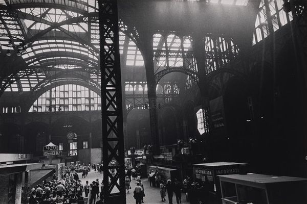 Max Yavno captured the Ferry Building in San Francisco, freezing a moment that transcends mere architecture. Look closely at the arches, those grand curves supported by stoic columns. Here, Yavno is not only documenting a building but invoking classical antiquity, echoing the arches of Roman aqueducts and triumphal gateways. These architectural forms, symbols of power and order, are reborn in the New World, repurposed for commerce and transport. Notice how the arches frame scenes within scenes, glimpses of lives in transit, reflecting the constant flux of modernity, a feeling of perpetual motion and change. Consider the grid-like patterns in the windows and walls. In ancient times, the grid symbolized structure and control, seen in city planning and the organization of sacred spaces. Yet here, the grid seems to contain and reflect the bustling energy of the city. The image invites us to consider the cyclical nature of history, how forms and symbols persist, adapting to new contexts, carrying echoes of past meanings into our present consciousness.