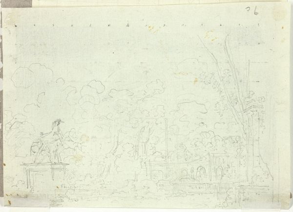 Editor: This is "Straatlantaarn lang een weg," a pencil and paper drawing from sometime between 1828 and 1897 by Adrianus Eversen. The lines are so faint; it's like glimpsing a memory. What do you see in this piece? Curator: For me, the starkness of the materials – simple pencil on paper – forces us to consider the means of production. Eversen's choice isn’t arbitrary. How does the easy access to paper and pencils democratize art-making, allowing for spontaneous documentation of urban life? This isn't a grand oil painting for a wealthy patron, but something much more immediate. Editor: That’s interesting. It does feel almost like a sketch from life. Curator: Exactly. The “impressionistic” tag is relevant too. Eversen seems concerned with capturing a fleeting moment. So, how does that quickness impact the representation of labor within this urban landscape? Who are the unseen workers responsible for maintaining the street and its infrastructure, for instance? Are they excluded from the “impression?” Editor: I hadn’t considered that. I was focusing on the formal qualities, the landscape... the impression. But thinking about who is *not* represented changes my perception of it completely. Curator: Material conditions and representation are inextricably linked. This work prompts us to investigate whose stories are prioritized through these sketches and why. Think of the materials’ cost, transportation and accessibility during the era – where did this paper come from, and who had access to it? Editor: This gives me a new lens for looking at art. I often just see the final image, never really questioning its creation and context on such a material level. Curator: That's precisely it. Art isn't created in a vacuum. It’s entangled within broader networks of material and social production, consumption, and power.