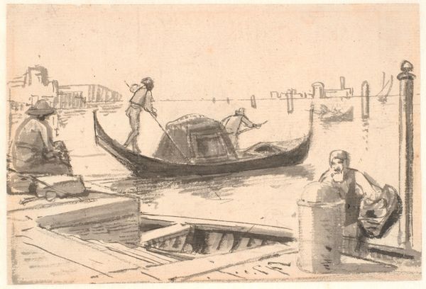 Editor: Here we have Ella Sophonisba Hergesheimer’s print, “Ada C. Shull, Nantucket”. It feels very architectural, almost a study in geometric forms despite being a cityscape. The buildings, the boats - they all have this blocky, solid presence. What stands out to you? Curator: The interplay of positive and negative space is compelling. Note how the artist uses hatching and cross-hatching to define volume and texture. Observe how the geometric arrangement is repeated in different components, such as reflections, but how light contrasts in value affect depth. Editor: The reflections really do create a kind of mirror image, furthering the geometric feel. So would you say the artist is prioritising form over a realistic depiction of Nantucket? Curator: The composition undeniably subordinates representational accuracy to formal relationships. Note the simplification of shapes, and the almost abstract quality. The artist’s control of the medium–presumably some kind of etching technique given the fine lines and tonal range–creates visual texture with each geometric zone, without being random. Why do you think such emphasis is given to form and texture? Editor: Perhaps to communicate the stillness and permanence of the scene? There’s an immobility about it, the buildings, boats and water locked together by texture, but what about a sense of place? Does this print convey anything about the essence of Nantucket specifically? Curator: It isolates qualities that define the site—its structures, materiality and spatial organisation are distilled to create visual harmony. Consider how a painting represents “site-specificity,” and you’ll recognize this approach isn’t an oddity, but common. Editor: That’s fascinating, thank you! I never would have thought to analyse a cityscape with formalism so rigidly. Curator: Indeed. Shifting perspective in art analysis generates the unexpected.