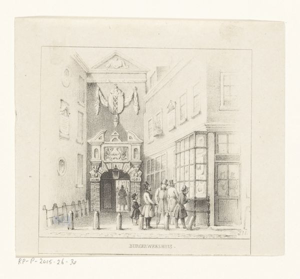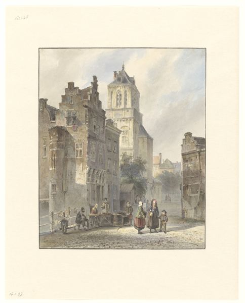 Curator: Look at this lithograph by Samuel Prout from 1833, simply titled "Cologne," currently housed at the Art Institute of Chicago. Editor: Immediately, I’m struck by the intense texture— the way the ink seems to vibrate on the page, all those tiny lines. There’s a stillness despite the implied bustling market. It's almost melancholic, isn't it? Curator: It’s interesting you say that. For me, the romance comes from Prout's obsession with the worn surfaces. He elevates the daily happenings of this cityscape through careful attention to materials, the labor, and even decay of urban architecture. I'd be interested to know where exactly this stone was quarried and to see it. Editor: Decay... or perhaps rebirth. See the little weeds growing from that fantastic oriel window? Like stubborn hopes sprouting from the old stones. This window becomes like the eye of a grand building, surveying the mundane scenes down below and feeling every raindrop, every ray of sun. Curator: Certainly, the romantic in Prout highlights this drama. I imagine the making of such prints wasn’t always so picturesque: grinding stones, acid etching. Then those workers haggling over produce under that awning over there. I wonder about their living situations; Were there social shifts or class struggles during this period of early Romanticism? Editor: Right! Maybe some revolutionary fervor barely contained. And thinking about the laborers themselves— their lives now faded into the background of someone else’s architectural sketch. I almost missed it because I was mesmerized by the way Prout captures this specific historical feeling and how the human element enhances the scale. Curator: Absolutely. What seems at first like a straightforward architectural study has all of this rich underlayment for sure. It shows this complex interplay between material processes, personal experience, and a broader social landscape. Editor: Exactly. Seeing the evidence of past processes makes a work feel infinitely more alive, wouldn't you say?
