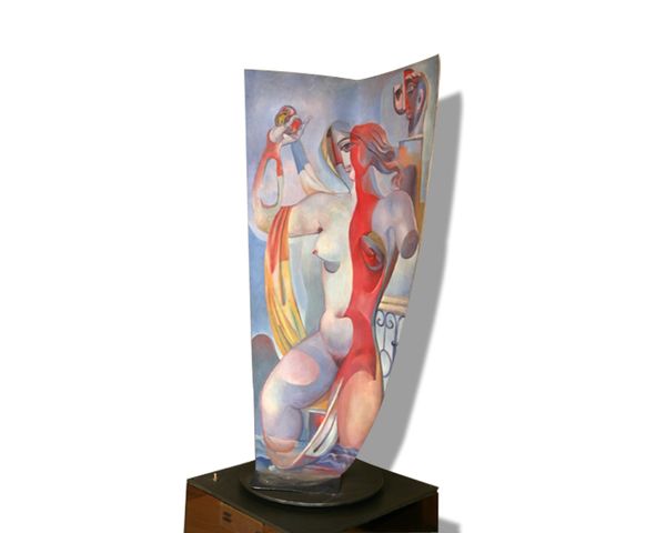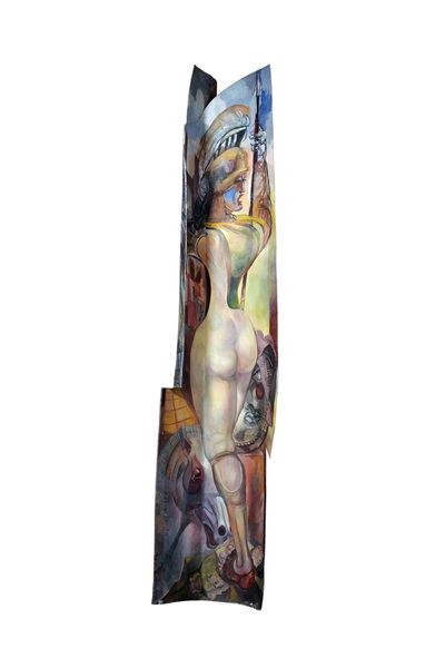 Here we see Yervand Kochar's sculpture, "Friendship", crafted with painted metal. The upward-reaching figures, almost fragmented yet unified, immediately evoke a sense of striving and aspiration. The open hands, a classic symbol of offering and acceptance, are particularly striking. This motif of raised hands echoes through art history, from ancient Egyptian depictions of adoration to Renaissance portrayals of saints receiving divine grace. The gesture transcends mere symbolism; it speaks to a deep-seated human desire for connection and transcendence. One sees traces of this impulse even in modern political rallies. Kochar's figures, rendered in a Cubist-influenced style, seem to break apart and reassemble before our very eyes. This artistic choice mirrors the often-fragile nature of human relationships. They require constant negotiation and reaffirmation to remain whole. The image taps into a collective memory of seeking solace and communion. It pulls us into an emotional landscape of yearning and shared experience, a powerful force engaging viewers on a subconscious level.