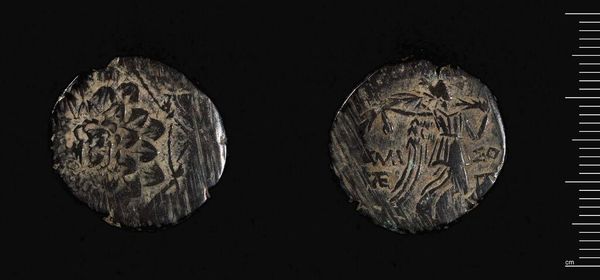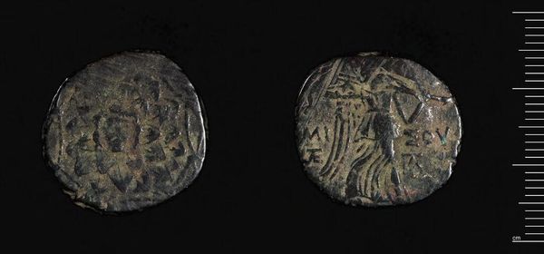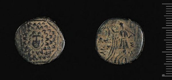 Editor: So, we have here a coin of Mithradates VI from Amisos, Pontos. It's small, worn, but somehow powerful. What do you make of it? Curator: It's a whisper from antiquity, isn't it? A king’s ambition pressed into metal. I see Mithradates, not just as a ruler, but as a man defying Rome, clinging to Hellenistic ideals. It's hubris, perhaps, but also, oddly inspiring. Editor: Inspiring? It’s a coin! Curator: But it *is* a statement. A king putting his face and ambitions—however grand or deluded—into the hands of his people. Imagine the stories it could tell! I always wonder how many times it might have changed hands, each touch leaving its own mark. What do you think it says about power? Editor: That’s a great point, actually. Power isn't just armies and decrees; it's also about who controls the narrative. This coin is a perfect example of that.