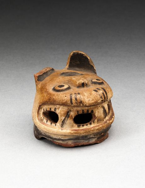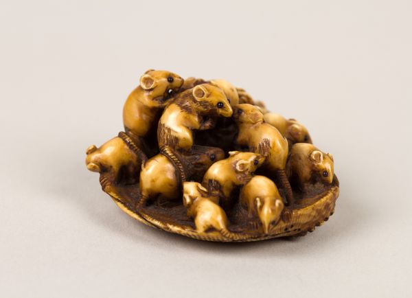 Editor: Here we have an 18th-century Japanese carving of a tiger, made from what appears to be wood. It’s a charming little sculpture; the tiger almost looks like a playful kitten. How should we interpret this work, considering its historical context? Curator: Looking at this netsuke, the labor involved immediately strikes me. Consider the craftsman: carving something so detailed from wood – the precise cuts to delineate the fur, the face. How did this artisan learn these specialized skills? It speaks volumes about apprenticeship and the transmission of knowledge within artisan communities of the time. Editor: That's interesting! It’s so tactile, it makes you want to know about the types of wood available, how accessible those materials were, and how that impacted the process. Curator: Exactly! The type of wood itself might have influenced the design – its grain, density, and workability dictating the level of detail achievable. Furthermore, who would own such an object? It implies a level of wealth or status needed to commission or purchase something requiring such labor-intensive production. Editor: So, it’s less about the "art" and more about the how, the why, and who? It completely reframes how I view it. Curator: Precisely! We're shifting the focus from purely aesthetic appreciation to understanding the socioeconomic context that shaped its creation and circulation. Perhaps by understanding how the piece was created, we understand more about the world the artist inhabited. Editor: This completely changes the way I would talk about the netsuke. I now see its place within systems of labour and consumption. Curator: And it makes you question how we assign value and what makes an art object desirable across different socioeconomic lines.