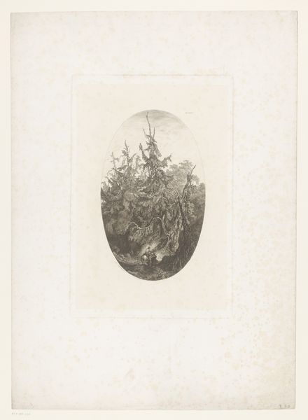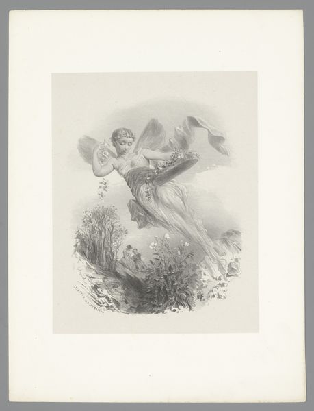 Adolphe Mouilleron made this print, "Young Woman Looking at a Swallow in the Greenery", sometime in the 19th century. It presents a scene of idyllic harmony, a young woman framed by lush vegetation gazes upward at a swallow in flight. This image resonates with the 19th-century Romantic movement's emphasis on nature as a source of beauty and spiritual renewal. At the time, the rise of industrialization led to an increasing sense of alienation from the natural world. Images like these offered viewers an escape, a nostalgic return to an imagined, simpler past. The setting— a verdant, uncultivated space— speaks to the growing appreciation for the natural landscape as a refuge from urban life. The woman’s upward gaze and the presence of the swallow, a symbol of freedom and renewal, further amplify the print's message of hope. To fully appreciate this image, one might delve into the period's literature, exploring the writings of naturalists and poets who similarly found solace and inspiration in the natural world.