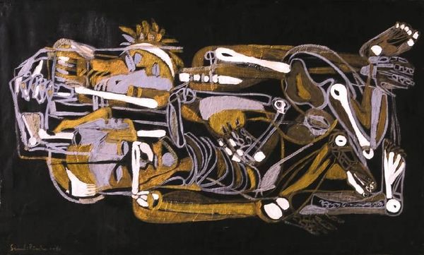 This untitled work by Luciano Bartolini is pure, unadulterated process, a kind of dance made visible through strokes of black, gold, and white. Look at how Bartolini lays down the paint. It's not about hiding the gesture, but about making the gesture itself the subject. The paint is thick in places, thin in others, almost like he’s testing the limits of the medium, pushing it around to see what it can do. Notice that one swirling mark near the centre? It's like a little universe unto itself, a testament to the sheer joy of making marks. It makes me think of Franz Kline, but with a touch more… tenderness, maybe? Bartolini seems to be inviting us to witness the act of creation, embracing the messy, unpredictable nature of artmaking. It’s a reminder that art isn’t about answers, but about the questions we ask along the way.