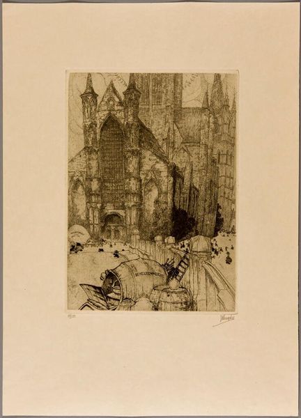 This is Wijnand Otto Jan Nieuwenkamp's "Entrance to the Great or St. Nicholas Church in Monnickendam", created as a line drawing on paper. The composition is dominated by the intricate linework, which creates a dense, almost hypnotic visual texture. Nieuwenkamp uses tightly packed lines to delineate form and space, drawing our eyes into the details of the architecture and the organic shapes of the tree. The stark contrast between light and shadow gives the image a graphic quality, flattening the space while simultaneously emphasizing the tactile nature of the brick and bark. This push-and-pull between flatness and depth destabilizes traditional perspective, inviting us to reconsider how we perceive spatial relationships in art. The lines create a semiotic system, where each stroke functions as a signifier, contributing to a complex network of meaning. This approach challenges fixed meanings and engages with new ways of thinking about representation. Nieuwenkamp compels us to recognize that art is not just about what we see, but how we interpret the visual language before us.