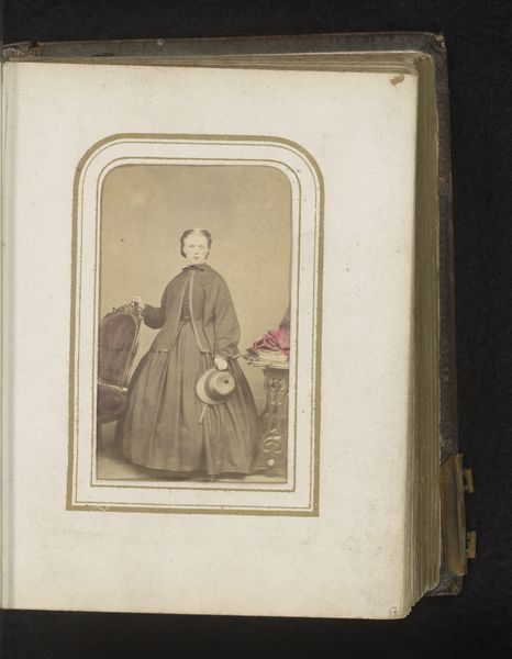 This is a portrait of a woman standing by a chair made by Coenraad Cornelis Roskam. Note the modest dress, the high neckline, and the minimal jewelry. This echoes a broader cultural emphasis on virtue and inner worth rather than outward display. The woman’s hand rests gently on the chair, a pose reminiscent of classical portraiture, where it was common to see subjects posed with pillars or other architectural elements, signifying stability, and a connection to tradition. Interestingly, the chair itself, often a symbol of authority or status, is here softened with a bouquet of flowers, adding a touch of domesticity. Flowers are not merely decorative; they represent the fleeting nature of life, beauty, and innocence, concepts that have been contemplated in art and poetry across cultures. The photograph captures not just an individual but also the spirit of an era, and the symbols and iconography used are recurring motifs in the theater of human life.