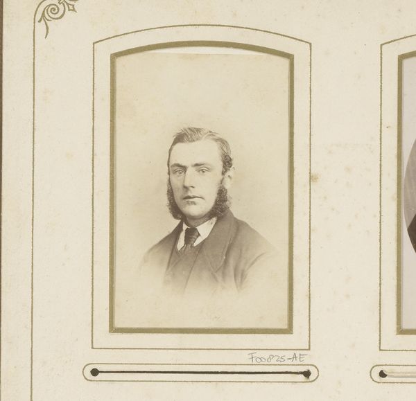 Editor: Here we have a gelatin silver print dating from the 1880s-1890s, "Portret van een man met snor," or "Portrait of a Man with a Mustache" by Willem Gerhardus Kuijer. The detail achieved in such a small format is striking. What strikes you most about this piece? Curator: I see a confluence of class and emerging technology. Consider the gelatin silver print itself. It represents a shift toward mass production in photography, making portraiture more accessible than painted portraits for the growing middle class. Editor: Interesting. I hadn't thought about the democratization of the portrait. Curator: Exactly! But note the man’s attire: his double-breasted jacket and carefully groomed mustache denote a certain status. This wasn’t just anyone getting their picture taken; it suggests aspirations of upward mobility made newly possible through industrial and chemical processes. The mass production of suits and photography materials went hand-in-hand. Does that connection resonate? Editor: Absolutely! It paints a clear picture of the social landscape at the time. It makes me wonder about who had access to these technologies and who was excluded. Curator: A key point. While cheaper than painting, early photography still had associated costs. Thinking about who is *not* in these portraits is equally crucial. These visual materials circulated widely and acted as material symbols in defining social roles. Editor: This has definitely shifted my perspective. I was focused on the individual, but I see now how the image represents much broader economic and social forces at play. Curator: Precisely! Examining the materials and modes of production transforms how we view even the simplest portrait.