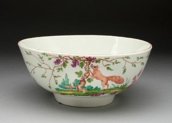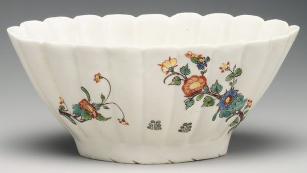 This butter tub was made by the Worcester Royal Porcelain Company. Like many porcelains, it probably began on a potter’s wheel, then was carefully embellished with modeled details to give it an appealingly organic quality. It’s a tour-de-force of fine ceramic production, a useful domestic object elevated through considerable skill. Look closely, and you’ll see transfer-printed decorations, and hand-painted details on top of that, which enliven the surface. Porcelain like this was made by a division of labor, meaning many hands were involved. Some would have mixed the clay, others throwing, and some printing. The artistry is really in the coordination of all these different kinds of expertise. As such, this tub is not just a pretty vessel for butter, it’s a testament to collective effort and the power of design to orchestrate that effort.