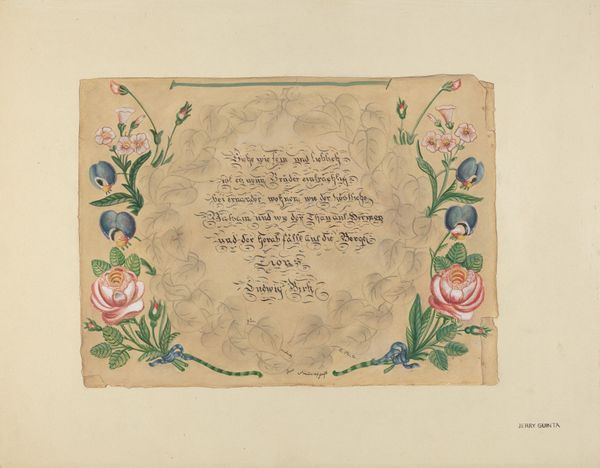 This Ketubah, or marriage contract, is an exquisite, illuminated manuscript of unknown origin. Its visual architecture balances text with symbolic imagery. The square Hebrew script on the parchment serves as both legal document and artistic border, framing the central imagery. Pairs of birds and heraldic lions decorate the upper register. These animals flank a stylized vase of vegetation, which is rendered with an emphasis on symmetry. This symmetry gives the piece its formal structure, yet the soft, imprecise brushwork complicates any notion of fixed or perfect representation. The work subverts established meanings through hybridity. The lions, though regal, have almost human faces, challenging the boundary between the animal and human realms. The stylized floral patterns further destabilize fixed categories, blurring the line between nature and artifice. Consider how these formal choices function within the cultural context of marriage. The document invites us to contemplate the fluid and evolving meanings of union, tradition, and representation.