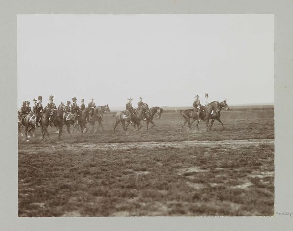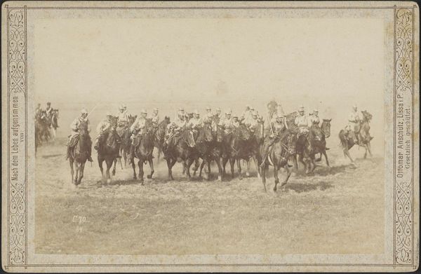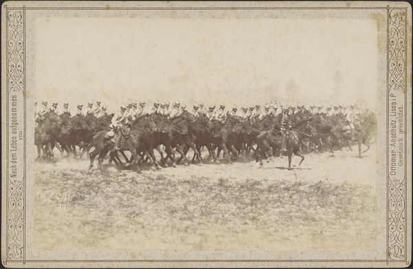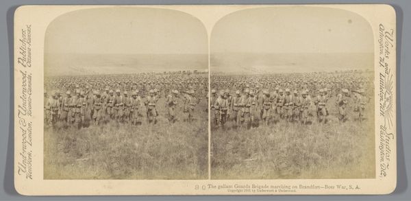This photograph of soldiers from the Camel Corps during the Mahdist War in Sudan was taken by Antonio Beato, though we don't know exactly when. Beato would have used a large format camera and glass plate negatives, coated with a light-sensitive emulsion. This was a painstaking, manual process, requiring significant technical skill. And remember, he was doing this under harsh conditions in Sudan. The final print, made using chemical developing agents, is a testament to the labor involved, both Beato's and that of his subjects. Consider the composition: the soldiers and camels are arranged in a seemingly endless line. Each one is an individual, but together they represent a powerful, almost mechanical force, which echoes the colonial project. The photograph’s muted tones and flat perspective give the scene a feeling of stark reality. Photography at this time served as both a record and a tool of empire. Ultimately, this photograph is more than just an image; it's a document of a specific time, place, and power dynamic, captured through a complex and demanding material process.