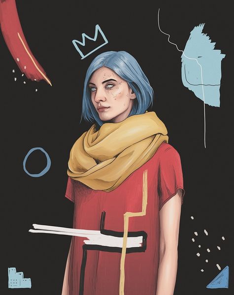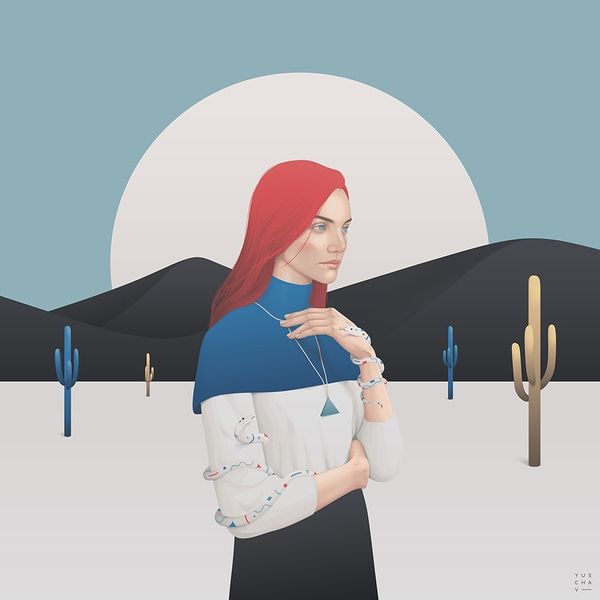 This digital artwork by Yuschav Arly, titled "Collaboration with SuicideSheep," presents a modern figure framed by potent symbols. The full moon behind the subject harkens back to ancient lunar deities, representing the cyclical nature of time and feminine energy. The two horizontal lines symbolize the horizon, a meeting point between the terrestrial and celestial realms. The moon, a recurring motif throughout art history, from classical Greek depictions of Selene to its presence in Romantic landscapes, embodies mystery and change. Here, the moon's cool light casts the figure in a dreamlike state, evoking a sense of introspection. Consider how the same moon illuminates Caspar David Friedrich's landscapes, stirring feelings of melancholy and the sublime. These shared symbols reveal how the language of images transcends time, tapping into a collective unconscious. The moon's continued presence in art reminds us of the enduring human fascination with the cosmos and our place within it. It represents the eternal return, resurfacing across epochs.