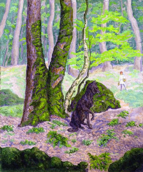 John Atkinson Grimshaw crafted this immersive landscape, A Mossy Glen, using oil paint to capture an intimate scene of nature. The composition is dominated by large, moss-covered rocks, set amidst a forest floor strewn with fallen leaves. The textures are richly detailed, inviting an emotional response of curiosity and wonder. Grimshaw's arrangement of elements creates a structured yet wild space. The rocks, acting as anchors, divide the scene while the surrounding foliage blurs the boundaries between foreground and background. This interplay between structure and fluidity echoes the Romantic era's fascination with the sublime—nature that is both beautiful and overwhelming. Consider the semiotic function of moss: traditionally, it symbolizes growth and endurance. By foregrounding these mossy rocks, Grimshaw subtly engages with philosophical ideas about time, decay, and the continuous cycle of life. The painting, therefore, becomes more than a depiction; it's a meditation on our place within the natural world. The way Grimshaw uses texture encourages us to contemplate nature's ability to reclaim and transform.
