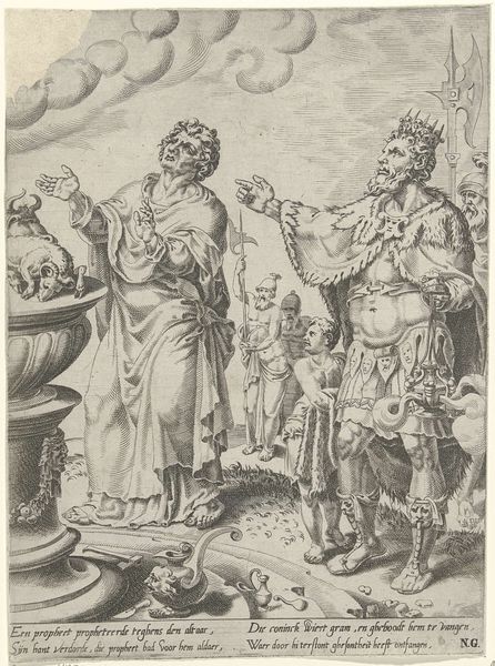 Curator: Here we have a drawing attributed to Jean Jouvenet, tentatively titled "Biblical Scene." It's currently held here at the Harvard Art Museums. Editor: Striking! My first thought is theatrical staging; it feels like a dramatic tableau frozen in ink, with the players caught mid-scene. Curator: Yes, Jouvenet captured a certain tension. Look at the costuming—the bishop’s mitre, the soldier’s plumed helmet—each figure meticulously rendered through layering washes of ink to create a sense of depth and texture. Editor: The material heft of those garments…and the drawing itself, made with iron gall ink, likely produced from tannin and iron salts. The labor in creating those inks and then applying them with such deliberate strokes is worth noting. Curator: It does make you wonder what story Jouvenet intended to convey, doesn't it? Editor: I'm less interested in the narrative, and more in the historical materiality… the craft and consumption in early modern Europe. Curator: Perhaps, but the story it hints at still reverberates, doesn't it? A powerful scene rendered with delicate ink. Editor: Precisely. It's the ink's history that speaks volumes.