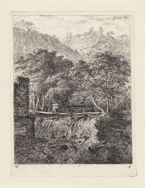 Editor: Here we have "Italiaans landschap in de omgeving van Rome," an Italian landscape near Rome by J. Pallard, dating somewhere between 1650 and 1800. It’s a pencil drawing with a very peaceful mood, almost like a scene from classical mythology. How do you interpret this work? Curator: Immediately, I’m struck by the tension between the romanticized landscape and the power dynamics inherent in its representation. Who has access to this idyllic vision? This wasn't just innocent observation; landscape art of this period was often tied to ownership and power. Think about colonialism; landscapes became tools to assert dominion, both physically and culturally. Do you see echoes of that here, perhaps in the idealized presentation of the Italian countryside? Editor: I see what you mean. It does feel like a very curated view of nature, not necessarily a realistic one. Are you saying the very act of framing a landscape is a political one? Curator: Absolutely. Consider who *couldn't* access these landscapes—the peasants toiling on the land, or, zooming out, colonized populations whose homelands were being reimagined by European artists. Pallard’s composition invites us to see beauty, yes, but also to consider the socio-economic structures that underpinned such aesthetic experiences. Is the art an escape for wealthy patrons? An aesthetic projection? What is excluded from the drawing's narrative? Editor: That's fascinating, I never thought of landscape art in this light. It's much more than just a pretty picture. Curator: Exactly. It reflects the values, the aspirations, and often the exploitative practices of its time. By looking at the context surrounding art like this, we start unpacking a more complex and truthful story. Editor: I'll definitely carry that with me as I explore more landscape art! Curator: Excellent. It encourages us to be more active viewers, constantly questioning and contextualizing what we see.