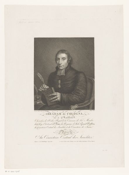 Curator: Allow me to introduce you to this engraving, "Portret van Johann Christian von Mannlich" by Johann Wilhelm Hoffnass, dating from between 1751 and 1795. Editor: He looks a bit severe, doesn’t he? Almost…clinical. It’s the precision of the lines, I think, combined with that rather direct gaze. Curator: Absolutely, Hoffnass’s skill with the engraving captures an undeniable formality. Note the meticulous rendering of his attire, the crisp lines defining his jaw, it all speaks to Baroque aesthetics, yet also has a Neoclassical restraint. Editor: It's fascinating how this almost mechanical medium—engraving—still allows a glimmer of personality to peek through. There’s a depth in his eyes that the artist has clearly captured. Maybe he was a softy at heart pretending to be formidable! Curator: It’s not just about the likeness; Hoffnass is employing strategies in this composition, from the contrast in textures to the placement of light and shadow, that construct a clear representation of authority, or at least the perception of it. This print immortalizes not just the man, but the very essence of the age’s power structures. Editor: Yes, there is a feeling of permanence about it. Do you think he knew this image would survive centuries, be seen and pondered over? Perhaps this thought alone is what contributes to that weight, and slightly sombre aura it emanates. Curator: It’s almost magical to contemplate how an artist working within certain artistic parameters can give life to someone who lived hundreds of years before us and give their impression with the hope that one day someone such as you or I might consider their impact. Editor: The Baroque era captured so much dramatic flare with painting techniques. Here it's so amazing that it can be also accomplished through engraving! He probably thought nobody will remember the Baroque flair ever! Curator: Quite, the beauty of engraving lies in its enduring precision. Editor: A reminder that beneath the veneer of control and history lies the heartbeat of an individual, caught in a specific place in time, thanks to the artist's hands.