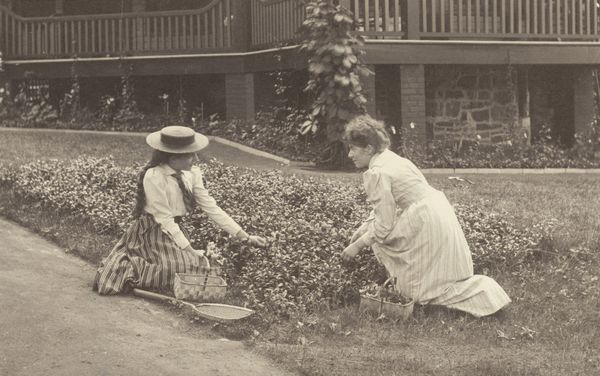 Editor: Here we have Alfred Stieglitz’s "At Oaklawn," a photograph likely taken between 1891 and 1896. The woman in her white dress gives off a melancholy air amidst the rose bushes and garden path. What are your initial thoughts on this piece? Curator: My eye is immediately drawn to the deliberate composition and the woman’s pose. Pictorialism often presented idealized, romanticized views, yet beneath this aesthetic is often the subjugation of women, confined to domestic and decorative roles. How does Stieglitz simultaneously reinforce and perhaps subtly question those expectations? Editor: I hadn't considered the social aspect of it, only that it seems romantic. Do you think there’s an intentional commentary? Curator: Stieglitz, even within pictorialism's aesthetic constraints, couldn't entirely escape the socio-political climate. The very act of photographing a woman within the domestic sphere and then calling it art elevates or confines her depending on your perspective. We must ask: Whose gaze are we seeing this through? How does that affect the narrative being constructed? Editor: So the setting becomes a stage, in a way? Curator: Precisely. The garden, with its cultivated nature, symbolizes the restrictive environment that defined many women’s lives during that era. What could it mean that the woman is framed within this? The roses themselves—beauty as well as constraint—can symbolize passion, love, but also their fleeting nature, reflective of women's limited agency at the time. Editor: That’s a fascinating way to look at it. I'd only thought of the beautiful scene. Curator: The beauty is seductive, isn't it? Which is why we need to unpack it. Consider also what is missing or implied. Doing so provides us a richer, more complete understanding of the art, and the society which fostered it.