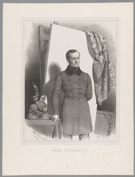 Editor: So, this is "Portret van Gerrit van der Jagt," an engraving from around 1851 to 1883 by Johan Hendrik Hoffmeister. It’s quite striking, but also feels very… contained, somehow. What do you see in it? Curator: The power of portraiture lies in its capacity to preserve and project ideals, to weave together individual identity with the collective aspirations of a time. The gentleman's confident yet subdued posture, his hand subtly placed—these are all potent symbols of societal roles and personal worth. Notice how the engraver uses light and shadow? What might that convey to you? Editor: It’s almost like he’s holding back, keeping something private. The light emphasizes his face, making it very present, while the rest recedes. Curator: Precisely. Think about the era; realism as a style suggests an attempt to capture an honest likeness, yet the *very act* of commissioning a portrait implies a curated self-presentation. What’s he trying to tell us? Is it just about his position in society, or is there something deeper? The subtle intensity of his gaze hints at a rich inner life. Editor: I guess I assumed realism was just about showing things exactly as they are, but there's still so much interpretation involved, even in an engraving. It really does feel like a conversation between the sitter, the artist, and us, the viewers, across time. Curator: Absolutely. The image lingers in cultural memory. These curated symbols and presentations persist in ways that reveal values. They serve as tools for understanding the world. Hopefully, that understanding informs progress and innovation.