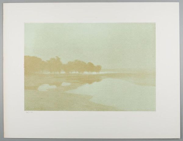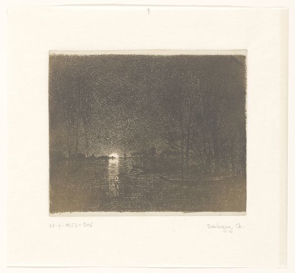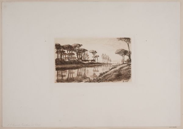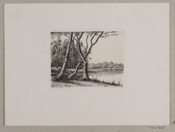 Hans Julius Fæster created this etching, Landskab. Måneskin, sometime around 1900. The composition is dominated by horizontal lines of the landscape and the reflections on the water, crossed by vertical trees, together creating a sense of depth and tranquility. The limited tonal range of the etching enhances the ethereal quality of the moonlight. Fæster masterfully manipulates light and shadow to create a balanced asymmetry. The moon, positioned off-center, reflects on the water, drawing the eye through the composition. The dense, dark trees on the right are counterbalanced by the lighter, more open landscape on the left. This use of chiaroscuro not only enhances the visual drama but also invites contemplation of the sublime. The etching technique itself, with its fine lines and textures, adds to the overall sense of delicate beauty. It is a testament to Fæster’s ability to transform a simple landscape into a profound meditation on nature, and our place within it.