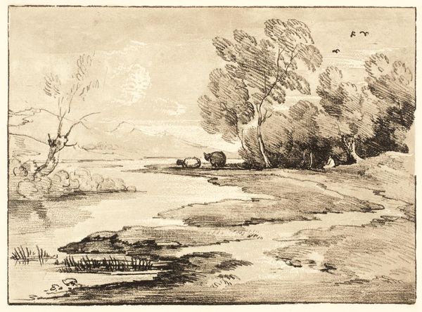 Curator: "Rocky Islets on the Ganges at Colgong," drawn by Lt-Col George Francis White, presents a serene view of the Ganges. Its delicate lines immediately create a sense of stillness. Editor: It’s captivating. The textures of the rocks and foliage, all rendered in graphite, speak to the meticulous labor involved in capturing this scene. Curator: Indeed, White's position as a British officer in India shapes the narrative. The drawing reflects a colonial gaze, documenting the landscape while subtly asserting control through observation. Editor: And consider the paper itself—likely imported. The means of production reveal a network of trade and power dynamics inherent in the colonial project. Curator: Precisely. White’s work can be seen as both an artistic endeavor and a form of imperial record-keeping, influencing perceptions of India within Britain. Editor: Looking at it, I am struck by the detail. The work put in foregrounding nature seems to simultaneously exoticizing it, too. Curator: I agree. It's a complex layering of perspectives. Editor: Ultimately, the confluence of materials, labor, and social context opens up rich avenues for understanding this landscape, and its history. Curator: It highlights art’s ability to reflect not just beauty, but the intricate web of power and perspective that shapes our world.