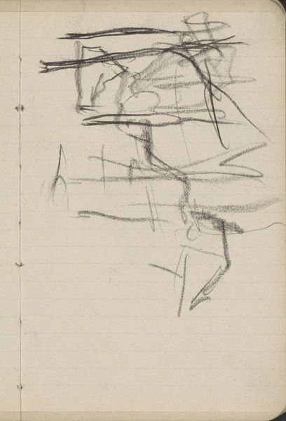 Editor: This is "Bomen," or "Trees," a pencil and pen drawing by George Hendrik Breitner from 1912. It’s currently at the Rijksmuseum. It feels like a fleeting impression, a glimpse of trees rather than a detailed study. What do you see in this sketch? Curator: The rapid lines immediately suggest transience, as you mentioned. Consider the tree – a potent, ancient symbol of life, growth, and interconnectedness across cultures. In Breitner’s rendering, the rigid lines and stark contrast evoke a sense of fragmentation. Do you notice how the overlapping branches create a network of lines? Editor: Yes, it almost feels chaotic, but somehow still balanced. Curator: Precisely! It's the balance between chaos and order that intrigues. The tree, rooted deep in the earth, reaching for the sky…it mirrors our own internal struggles, our desire for stability versus the unpredictable nature of life. What feelings do you get when viewing a forest? Editor: A sense of awe, definitely. But sometimes, a bit of unease, like getting lost. Curator: Breitner's trees tap into that collective feeling, wouldn't you agree? The somewhat crude technique seems almost defiant. This isn't about pristine beauty; it's about the raw energy and inherent tensions found in the natural world. Editor: So, even in this seemingly simple sketch, there's a whole world of symbolic meaning. I see that the lack of refinement gives it an undeniable emotive punch. Curator: Indeed! Breitner understood how to harness the power of suggestion. He asks us to project our own interpretations onto this basic scene, evoking individual feelings based on cultural and personal experiences. This piece speaks volumes with simple marks, leaving its emotive possibilities open for us. Editor: That’s a fresh perspective. I didn’t expect so much symbolism within what appeared, at first glance, as an inconsequential sketch. Thanks.