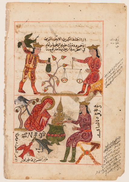 This is a page from Ibn Bakhtishu’s “Manafi' al-Hayawan (On the Usefulness of Animals),” made during the medieval period when there was a flourishing of intellectual activity in the Islamic world. Here, the artist depicts a pair of intertwining serpents, rendered with striking detail against a backdrop of text. This juxtaposition of image and text invites us to consider the complex relationship between art and knowledge. The representation of animals in medieval Islamic art often carried symbolic meanings, reflecting beliefs about the natural world. Serpents could represent healing, or serve as omens and symbols of protection. How does the artist play with these established representations? Consider too, how the act of depicting these animals, of trying to understand their usefulness, speaks to a broader human desire to categorize, control, and make sense of the world around us. What do you feel when you look at them?
