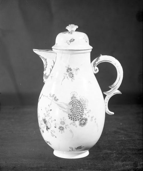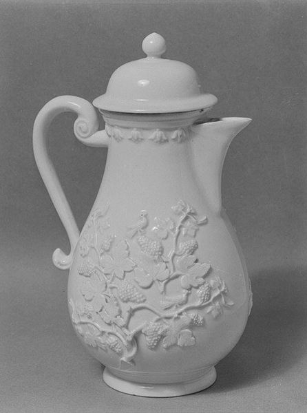 This coffeepot was made at the Meissen Manufactory from porcelain, an innovative material produced through intense labor. The use of porcelain influences the pot's appearance, giving it a smooth, white surface, ideal for decoration. The intricate designs of the coffeepot were meticulously hand-painted onto the porcelain, transforming the simple vessel into a storytelling canvas. These processes reflect the skilled traditions of ceramic artistry, as well as the high level of aesthetic and technical refinement that was brought to bear on even mundane activities like the drinking of coffee. The coffeepot's decoration is tied to social issues of consumption and taste, reflecting a growing market for luxury goods. It challenges traditional distinctions between decorative arts and high art, inviting us to appreciate the labor, craftsmanship, and cultural significance embedded within this object.