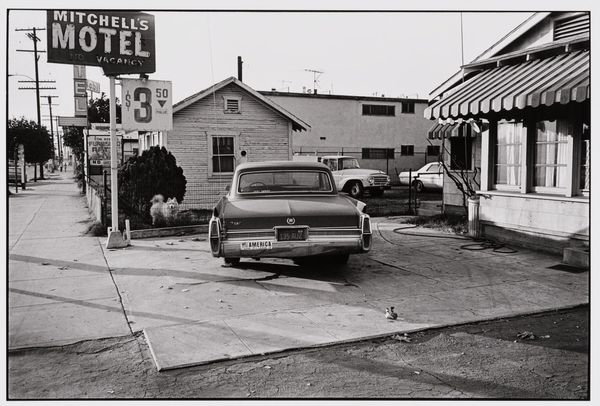 Editor: This is Rodger Kingston's photograph, "Little Rock, Arkansas," a seemingly ordinary scene, yet it feels charged. What narratives do you see embedded in this image? Curator: I see a landscape laden with the weight of American history. The abandoned gas station, under a somber sky, becomes a stage. The lingering vestiges of segregation, perhaps? What communities were served here, and which were excluded? Editor: So, you're saying it's more than just an abandoned gas station? Curator: Absolutely. Consider the broader context. Little Rock, forever linked to the fight for civil rights. The image prompts us to consider whose stories are told and whose are erased from the American landscape. What do you think? Editor: I didn't think of it that way at first, but it adds a powerful layer. Curator: Exactly. Art can make the invisible visible.