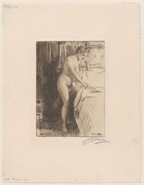 Editor: This is "Idyllisch landschap met twee naakte figuren bij kaarslicht", which translates to "Idyllic landscape with two nude figures by candlelight." It's a gelatin silver print made sometime between 1864 and 1904. I'm struck by how theatrical it feels, like a still from a play. What do you make of it? Curator: I see a fascinating layering of material concerns and societal norms being challenged through its production. Let's think about the gelatin silver process itself: it democratized photography, allowing for wider distribution of imagery. Editor: How so? Curator: Earlier photographic processes were much more laborious and expensive, restricting access to both the creation and consumption of images. The relative ease of gelatin silver prints expanded its use, impacting representation across class lines and permitting wider circulation of potentially transgressive images, such as nudes. Editor: So, the medium itself contributes to the artistic statement? Curator: Absolutely. The use of this "easier" technology contrasts with the constructed artifice of the image, especially in the figures. How does their depiction of "nude" versus "naked" reinforce or challenge traditional artistic practices? How does access influence visibility? Editor: That’s interesting. It makes you think about who gets to be seen, and by whom, based on both technology and social acceptability. I never thought of the materiality impacting the symbolic value. Curator: Precisely! It urges us to reconsider these prints not just as aesthetic objects, but as material evidence of social shifts and power dynamics embedded within the very tools of their creation and distribution. I appreciate you pointing out that contrast because I had tunnel vision.