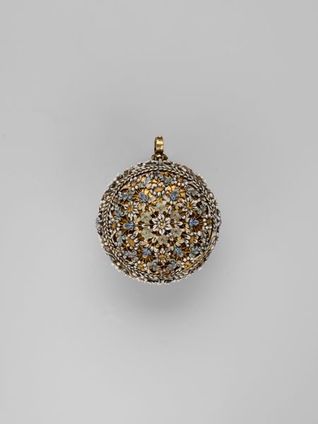 This gilded brass clock watch was crafted by Michael Nouwen around the 16th century. It bears repeating floral motifs, common during the Renaissance, and its ornate detailing suggests it was a prized possession. Now, let's turn our attention to the symbolic language of flowers. Floral motifs are deeply embedded in the human psyche, evoking themes of transience and beauty—a tradition we can trace to the ancient Greeks, who adorned tombs with flowers to symbolize rebirth. In Nouwen's time, the Renaissance revived classical motifs, integrating them into everyday objects. This clock watch, a symbol of fleeting time, is ironically decorated with symbols of enduring beauty. The intricate latticework on the cover is reminiscent of patterns found in Gothic cathedrals, which served as portals to the divine. The same impulse—to adorn functional objects with sacred symbols—persists in this delicate timepiece. Here, the flowers and geometric patterns speak to our subconscious desire to find order and beauty in the face of time's relentless march. They remind us that time, like a flower, has a natural cycle of bloom, decay, and renewal.