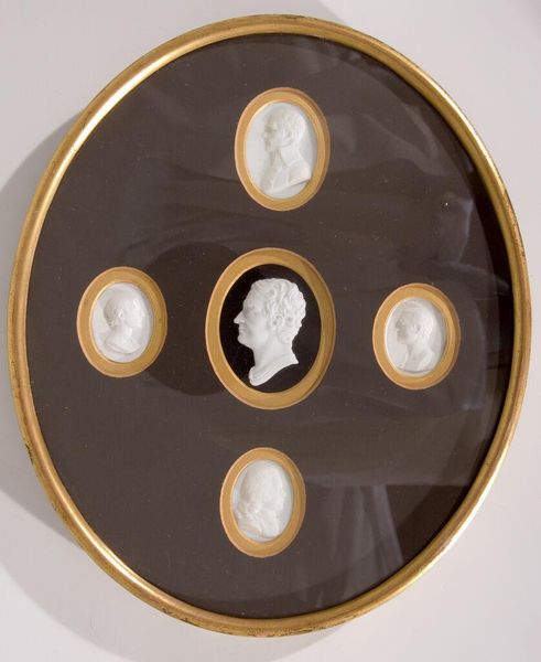 Editor: This display features miniature relief portraits by James Tassie. Each one is so tiny, like a precious secret. What's your take on this collection? Curator: It’s like holding a galaxy of faces, isn't it? Tassie, a master of replicating classical cameos, captures something more. The sheer variety suggests a deep curiosity, a yearning to preserve and understand humanity through these miniature portraits. Editor: It's interesting to think of these portraits as encapsulating something about humanity! Curator: Right? And in each tiny face, a universe of stories.