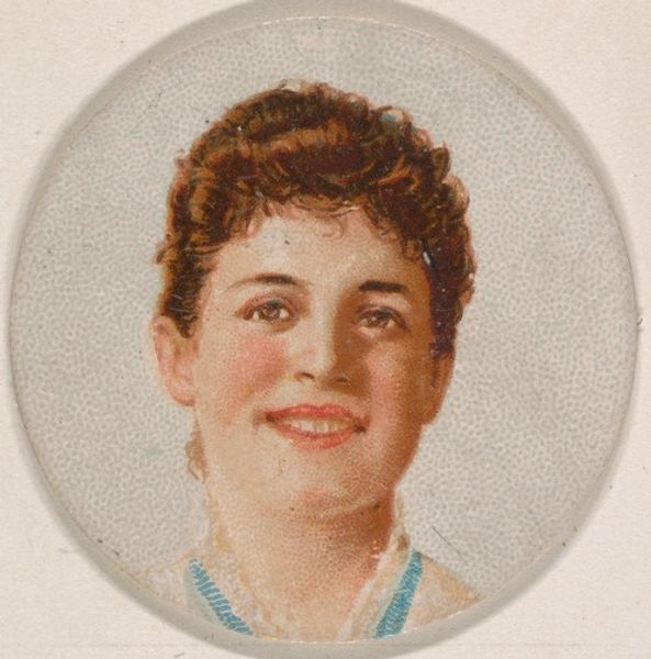 Editor: This drawing, "Actress wearing blue bodice," from the series "Stars of the Stage," created by W. Duke, Sons & Co. around 1892-1893, is striking. It feels almost like a mass-produced object attempting high art. What's your perspective on it? Curator: Considering this as a print made to promote Honest Long Cut Tobacco, we see a fascinating intersection of consumerism and artistic production. How does the intended consumption of this drawing – being included in a tobacco product – affect how you perceive its aesthetic value? Editor: It makes me think about how different that is from today's understanding of art and artists. Knowing its purpose, I wonder about the labor involved in its creation and distribution. Curator: Precisely. Examine the methods of production. It's a print, likely produced on a large scale. The skill and effort invested are evident, yet they were ultimately meant to drive sales. Does recognizing the means of production change your assessment of this piece, perhaps influencing you to see beyond conventional notions of art? Editor: Absolutely, it makes me question the division between "high" art and mass-produced images, and how context dictates its meaning. How might this image connect to trends of that time? Curator: It hints at the "Japonisme" trend, evident in the emphasis on flatness and decorative line that borrow from Japanese Ukiyo-e prints. Understanding the labor, materiality, and context allows us to engage with the portrait on many new levels. Do you agree that the original boundaries are thus challenged? Editor: Yes, this commercial image contains far more complexity than I first thought. Thanks for highlighting how deeply connected art can be with material culture and labor. Curator: My pleasure. Examining the making of art provides very enriching readings.
