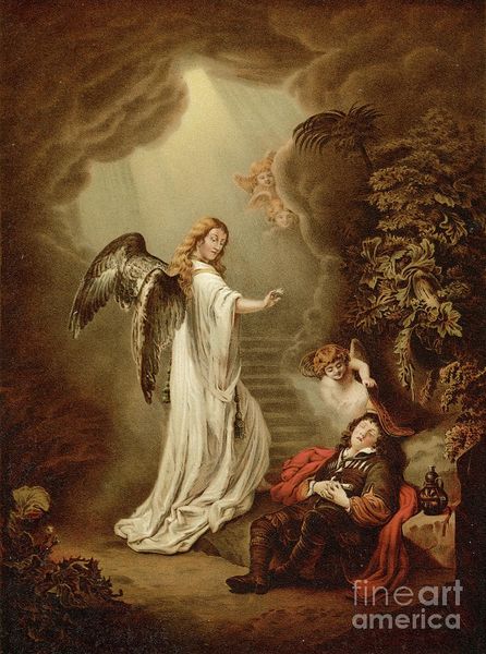 Francisco de Goya presents us with a depiction of "Tobias and the Angel." Here we see Tobias, guided by the archangel Raphael, holding a fish, an essential attribute that alludes to the healing powers it possesses. The angel, bathed in divine light, stretches out a hand to Tobias. Such gestures of guidance and protection can be traced back to ancient depictions of Hermes as a psychopomp, guiding souls. The act of bearing a fish carries its own weight. In early Christian symbolism, the fish, or "ichthys," served as a secret symbol of faith and recognition during times of persecution. The image of the fish reappears in numerous other contexts through time. In Goya’s image, we see an expression of reassurance, offering solace and evoking a primal sense of protection. This composition allows viewers to tap into collective memories of guidance and protection. The symbols echo through time, finding new life in the hands of Goya.
