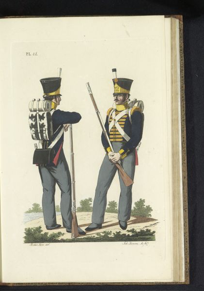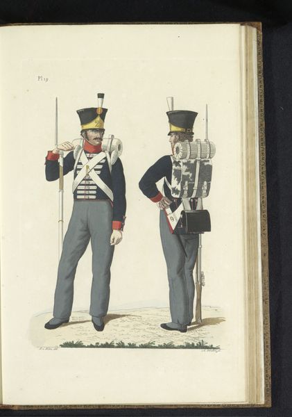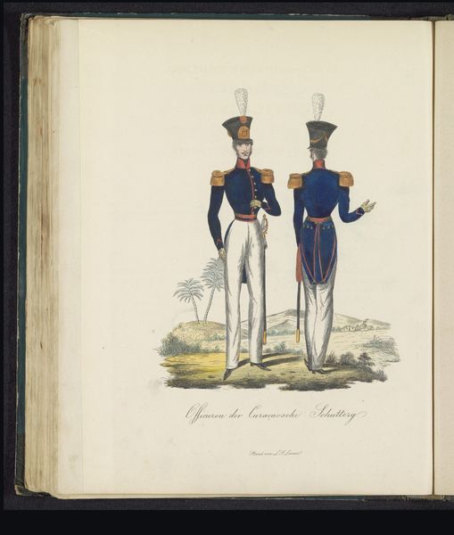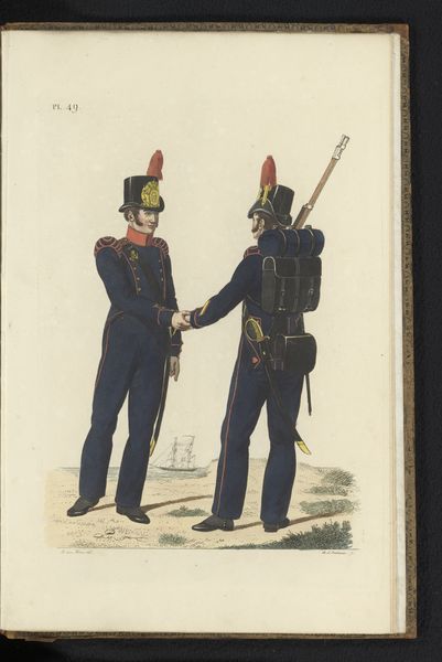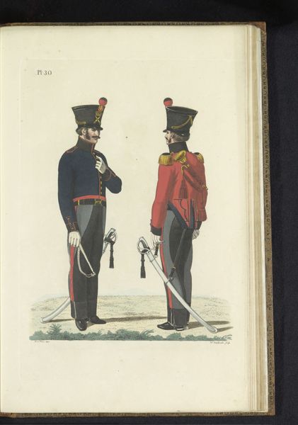 Johannes Cornelis Zürcher created this print depicting soldiers of the Swiss Regiment no. 30. We see here a visual record of military dress and regalia. But let’s consider what this image tells us about the social conditions of its time. It was produced during a period of significant political and social upheaval in Europe. Switzerland, while neutral, was not isolated from these events. This detailed depiction of soldiers offers insight into the organization and structure of military forces during the 19th century. The Swiss regiments, often serving foreign powers, played a crucial role in various conflicts. This image might be read as a comment on Switzerland's complex relationship with European powers. Its neutrality was maintained through military service. To fully understand this image, one would delve into military archives, historical records, and studies of Swiss mercenaries. The meaning of art lies in its contingency.