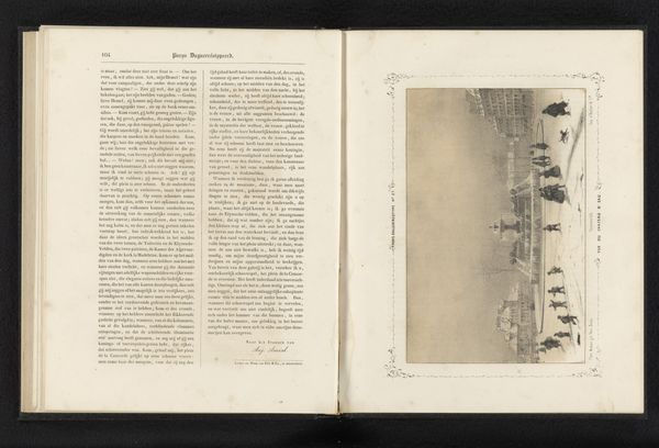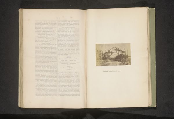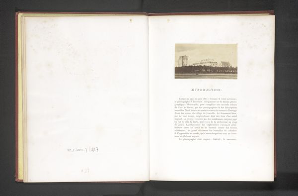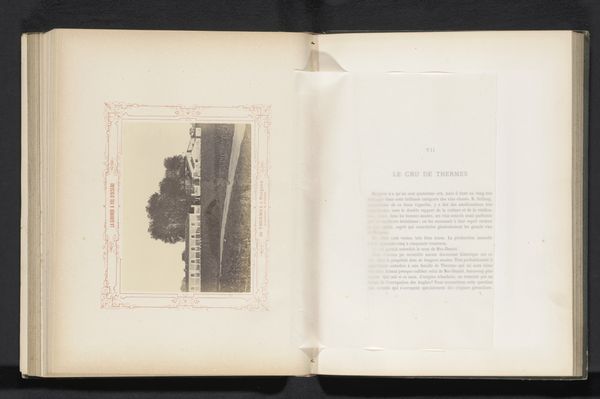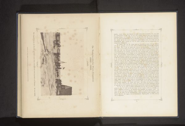 Editor: This image presents a page from a sketchbook, featuring a photographic print titled "Gezicht op de Varna in de haven van Trondheim," taken before 1886, by H. Ekama. The aged paper and hand-drawn typeface surrounding the photograph give it an intimate, almost journal-like quality. What story do you think this sketchbook page tells about the relationship between art, travel, and knowledge in the 19th century? Curator: It speaks volumes, actually. Consider the Dutch Golden Age revival influences visible here in photography. The sketchbook, conceived as a personal repository, became a vital tool for documenting expeditions. This blend of photography and hand-drawn typography highlights the burgeoning role of visual evidence in shaping public understanding and historical narrative. It also asks what was admissible as “truth.” Notice the frame around the picture; does it signal any particular meaning, as separate from other sketches in the journal, for instance? Editor: That’s interesting. The framing does draw attention to the photograph as a distinct element. Perhaps it signifies its importance as a primary source, validated and displayed like an exhibition piece even within the private context of the sketchbook? Curator: Exactly. Think about who would create, possess, and engage with such a book? It suggests an educated, probably wealthy audience. Further, the framing, along with the meticulous labeling, elevated the photographic image to a level of documentary credibility, helping to cement photography’s place in scientific and cultural institutions. These types of “exhibitions” allowed people who were otherwise limited a view of these images. Editor: That makes me wonder, how much did these visual records shape the colonial gaze, influencing perceptions of the places and people documented? Curator: That’s a crucial question. It urges us to examine the politics embedded within these seemingly objective images, and to interrogate the power dynamics inherent in the act of documentation and dissemination. It serves to reevaluate photography’s public role as both an artistic and a political tool of knowledge. Editor: I’m walking away seeing how one artifact can reveal broader narratives about art, society, and the politics of seeing. Thank you. Curator: Likewise. It's a reminder of art's power to engage critical thinking about the stories we tell ourselves about the past.
