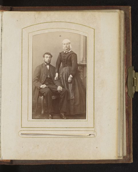 This is a portrait of two unknown young men by B. Frederick. This photograph offers a glimpse into late 19th century America, a time marked by rapid industrialization and shifting social norms. The two men, dressed in suits, exude a sense of self-possession. The man standing places his hand on the seated man's shoulder, an intimate gesture that could speak to brotherhood, friendship, or perhaps something more. During this time, expressions of affection between men were not always viewed through today's lens of sexuality. The photograph raises questions about how identity and relationships were both performed and perceived in this era. The backdrop, with its painted scenes and decorative elements, sets a stage that hints at aspirations of upward mobility and cultural refinement. While the subjects remain unknown to us, this photograph becomes a poignant reflection on masculinity, companionship, and the complex narratives hidden within the visual culture of the past.