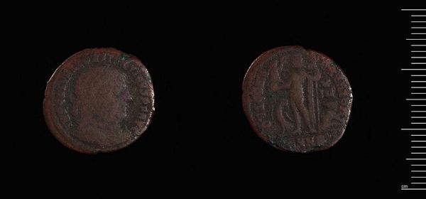 Editor: This is a bronze coin of Constantine I, from Siscia. It's small, only about 1.7 grams. It seems worn, but you can still make out the profile. What stands out to you about this piece? Curator: Coins are never just currency. They are tools of propaganda, carefully designed to project power. What narratives did Constantine want to circulate about himself? Consider the image of the ruler, almost always male, that’s circulated and how this can intersect with gender studies and power dynamics. Editor: So, it's not just about the value of the coin, but the message it sends? Curator: Precisely. These coins are artifacts deeply embedded in political and social currents. We can ask, whose stories are being told, and whose are being omitted? Editor: That makes me look at it in a whole new light. I didn't think a coin could hold so much meaning! Curator: It’s about understanding the multilayered ways objects communicate ideology.