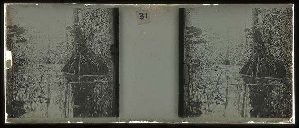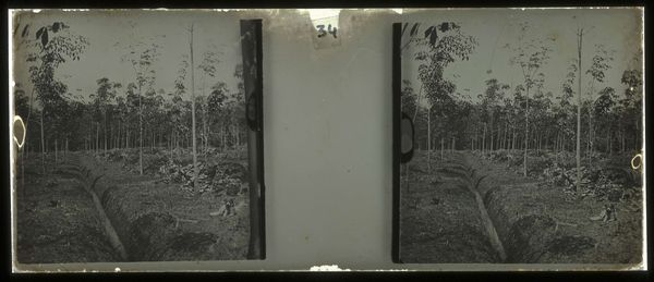 Editor: This contact print photograph, "Woonhuis van de Plantage Accaribo," dating from between 1913 and 1930 and currently held at the Rijksmuseum, presents a blurred dual scene, perhaps two subtly differing versions of the same image. I'm struck by the almost dreamlike quality, the softness of focus creating a hazy atmosphere. What formal elements stand out to you? Curator: The diptych structure itself commands attention. The slight shift between the two images invites a comparative reading. Consider how the mirroring and subtle variations influence our perception of space and form. The soft focus, a characteristic of pictorialism, prioritizes an atmospheric effect over sharp detail. Do you see how this lack of sharp lines changes the composition and focal points of the buildings presented here? Editor: Yes, it's less about precision and more about a mood. It feels like the buildings and scenery melt into one another with the help of the fog and poor visibility. The blurred shapes force the eye to construct the forms, rather than passively receiving them. Curator: Precisely. Now consider how the tonal range, predominantly in shades of grey, impacts the overall reading. Does this monochrome palette contribute to the sense of nostalgia, perhaps even hinting at a world partially veiled, or somewhat lost to time? How does that limitation define the work? Editor: Definitely. The lack of color strengthens the sense of distance. Thinking about it, without the distraction of bright hues, the eye focuses intently on the play of light and shadow, adding layers to the formal presentation and structural design of this building’s image. Curator: Precisely. Considering Brouwers' use of the contact print, and how this photograph reflects a vision filtered through subjective experience rather than objective recording, brings forth novel opportunities to reassess and recontextualize this vision and presentation. What fresh details did you pick up? Editor: I agree, thinking about it purely from form brings out novel context in older works. I learned to look past the themes for their role of structure. Curator: Indeed, structure forms the basic bones of a work like this one.