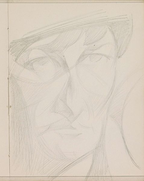 This is Jan Toorop’s pencil drawing "Portret van Miek Janssen" held at the Rijksmuseum. The portrait immediately strikes us with its delicate yet assertive lines. The subject, Miek Janssen, is rendered in profile with a concentration on the interplay of light and shadow that defines her features. The texture of the pencil strokes is palpable, creating a visual rhythm across the surface. Toorop's handling of the medium speaks to a broader artistic concern. The use of line not just to depict form but to suggest movement and emotion is prevalent here. The structural approach to portraiture engages with ideas about the self and representation. Toorop seems less interested in capturing a likeness than exploring the essence of his subject through the very act of drawing. Consider how the composition destabilizes traditional portrait conventions. The starkness of the lines challenges fixed notions of beauty, inviting us to reconsider how we perceive identity. The sketch serves not merely as a representation, but as a dynamic engagement with the possibilities of the medium.