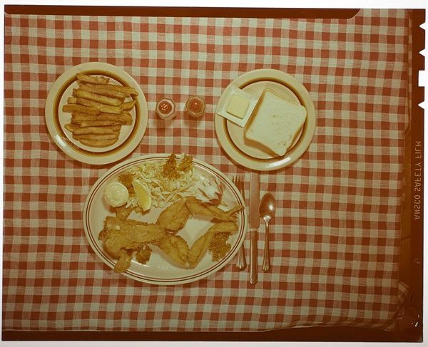 Curator: This is an untitled photograph by Jack Gould, housed here at the Harvard Art Museums. The gelatin silver print captures a chef's hands preparing tortillas from flour. Editor: It feels intimate, domestic. The warm tones and tight crop focus on the hands, making the simple act feel almost ceremonial. Curator: Indeed. The composition is striking, with the geometrical arrangement of the bowls and cooking implements lending a formal structure to an otherwise casual scene. Editor: The light is what gets me. The way it highlights the texture of the flour, the worn surfaces... it tells a story of generations. Curator: Precisely. The materiality speaks to a legacy of culinary tradition. I see a commentary on the everyday sublime. Editor: Well, for me, it's less about commentary, and more about feeling. A warm kitchen, the promise of a good meal, the love baked into every tortilla. Curator: I appreciate that personal response. It's a reminder that even in the most structured analysis, affect plays a role. Editor: Always does.