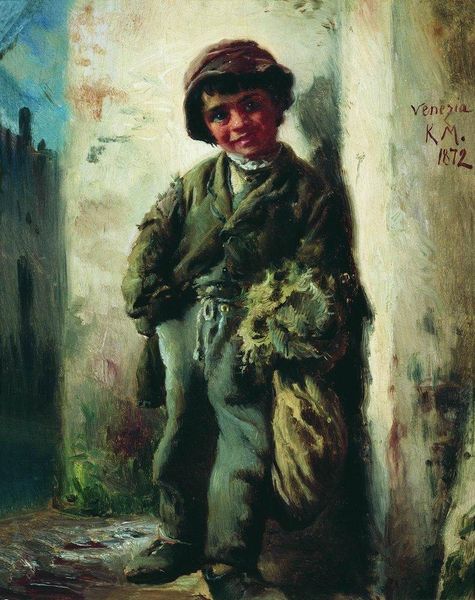 Ilya Repin’s "Old Farmer" presents us with an introspective figure painted with gestural brushstrokes, bringing the farmer to life through texture and form. The muted palette and dynamic brushwork create a sense of immediacy, capturing a fleeting moment of the farmer in contemplation. We see him rendered with thick impasto, particularly in his coat and beard, giving a tactile quality that contrasts with the smoother, more blended background. This contrast draws our eye to the subject, emphasizing his presence within the landscape. Repin destabilizes traditional portraiture by focusing on the psychological depth of an ordinary man. The farmer's downcast gaze and slouched posture invite viewers to interpret his internal state, challenging fixed notions of peasantry. The painting exists as a cultural artifact, an enduring subject of analysis and contemplation.