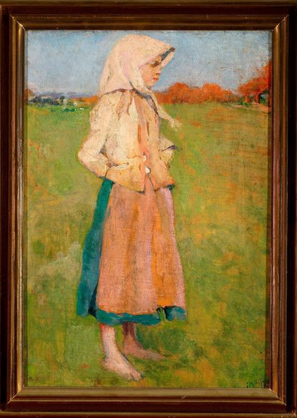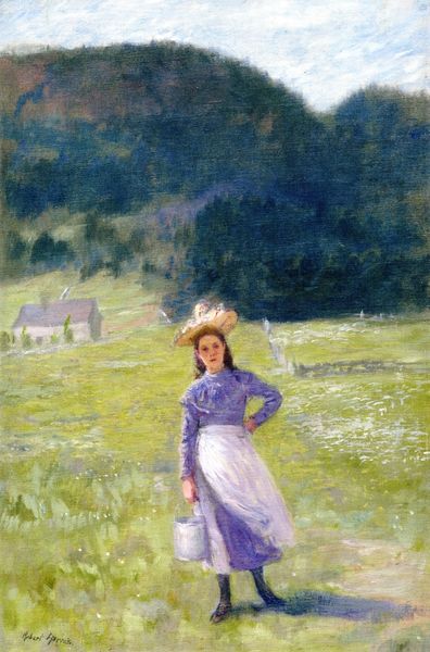 Robert Lewis Reid painted this portrait, entitled *Breezy Day*, with oil. A solitary woman stands, her gaze directed towards a distant horizon. The motif of the solitary figure contemplating the horizon is a recurrent theme throughout art history. Take, for instance, Caspar David Friedrich's *Wanderer Above the Sea of Fog*, where the lone wanderer stands atop a precipice, his back to the viewer, immersed in the sublime vastness of nature. Here, the figure, like Reid's woman, engages with a landscape, evoking profound feelings of longing and introspection. In Reid’s painting, the woman’s elevated vantage point suggests aspiration, or a quest for something beyond the tangible. The windswept dress and the wild sky adds to the emotional intensity, engaging us on a subconscious level. This composition becomes a mirror reflecting our own emotional states. This symbol has evolved through time, resurfacing and taking on new meanings in various historical contexts.